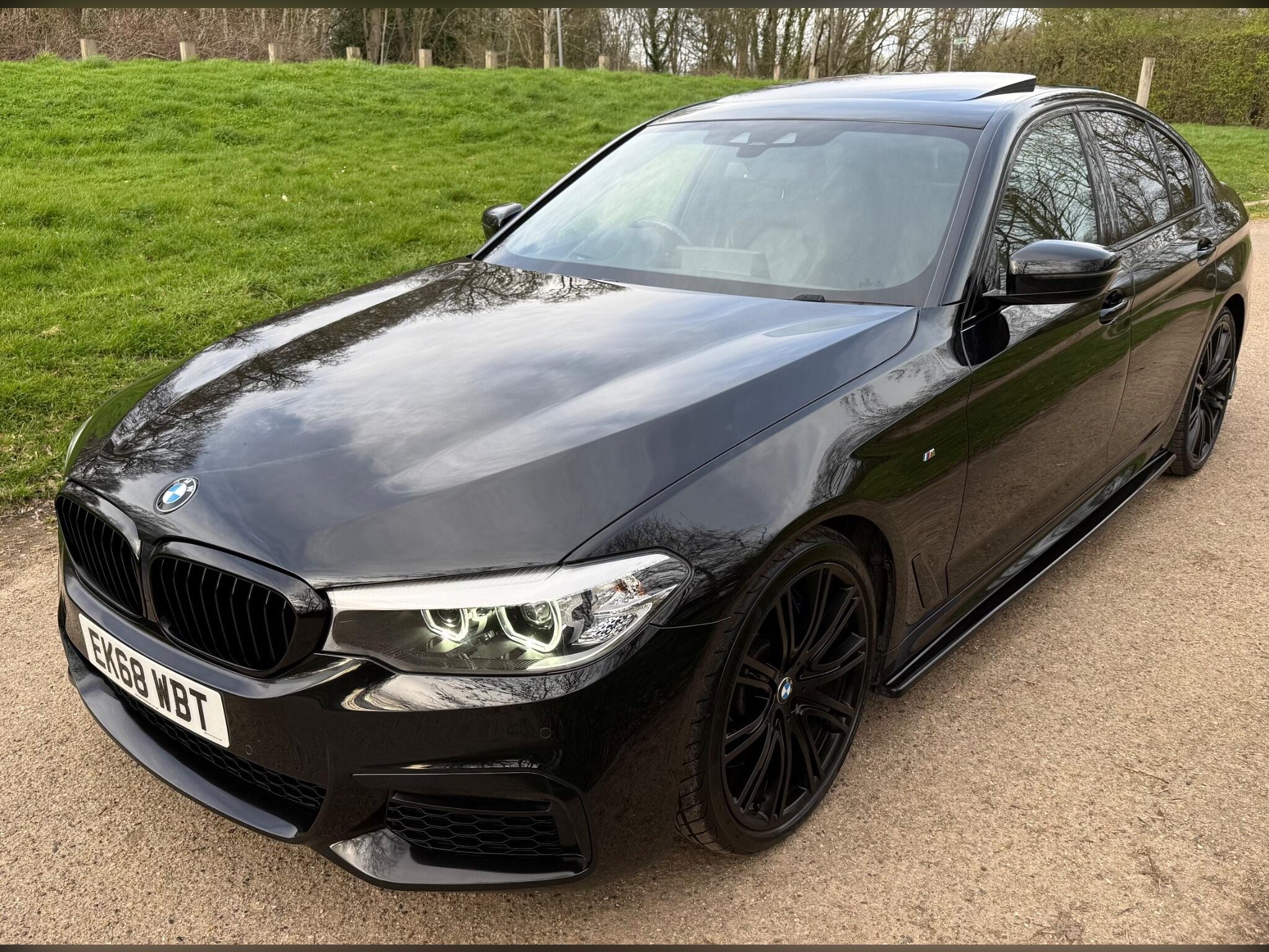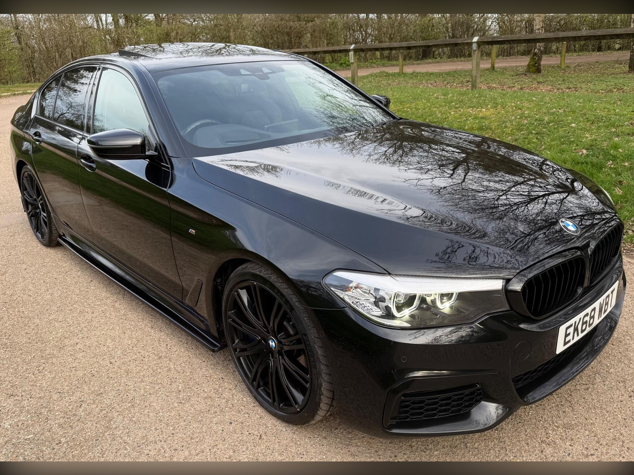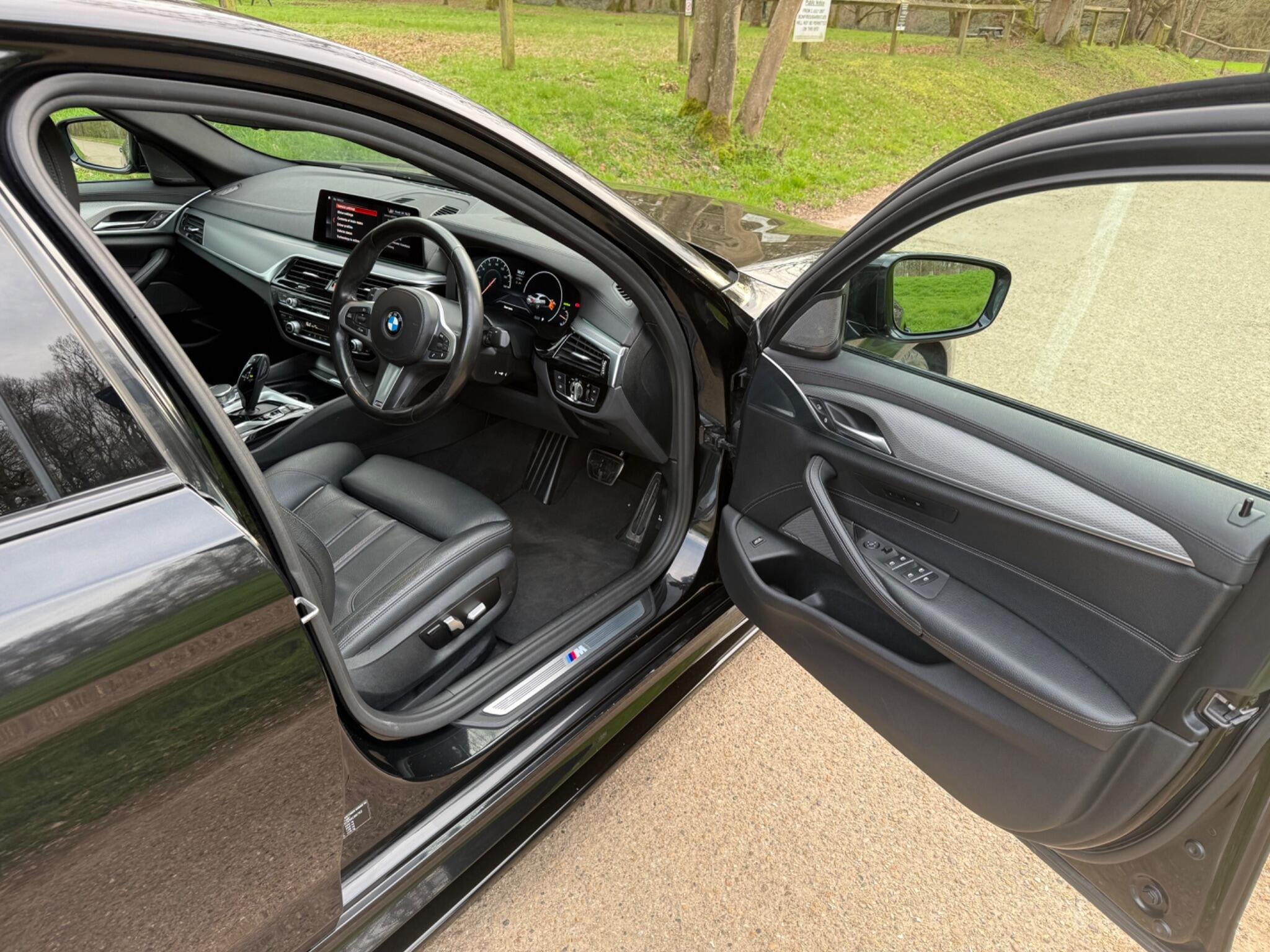 This 2018 BMW 5 Series 540i M Sport presents an exceptional opportunity with its remarkably low mileage of just 37,400 miles. This Euro 6 compliant, four wheel drive model boasts a powerful 3.0 litre petrol engine and comes with a clear vehicle history check. The M Sport trim enhances its appeal, and it features a desirable electric glass sunroof, a comprehensive Technology Package including Bluetooth, Head Up Display, and wireless phone charging, alongside striking 20 inch BMW Individual Light V Spoke Bi Colour alloy wheels. Furthermore, enjoy the convenience of Comfort Access with Smart Opener for keyless entry and a premium Harman Kardon loudspeaker system for an immersive audio experience.