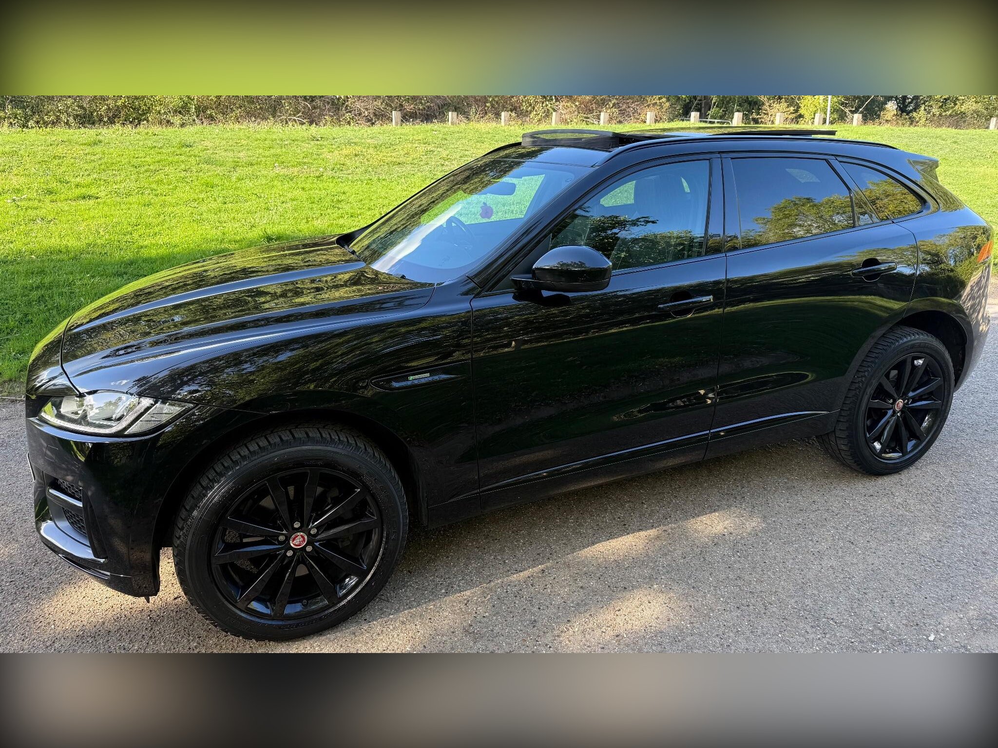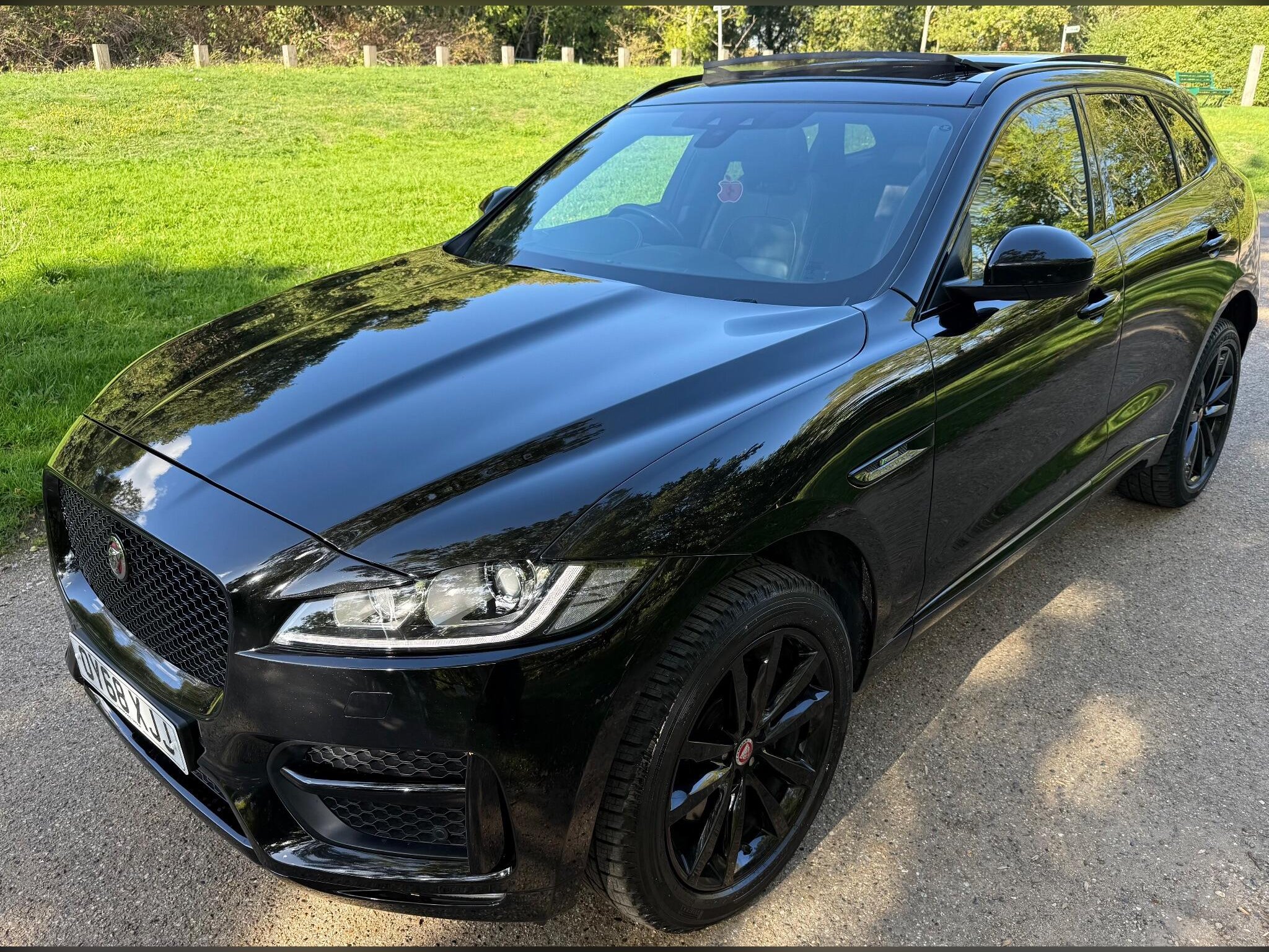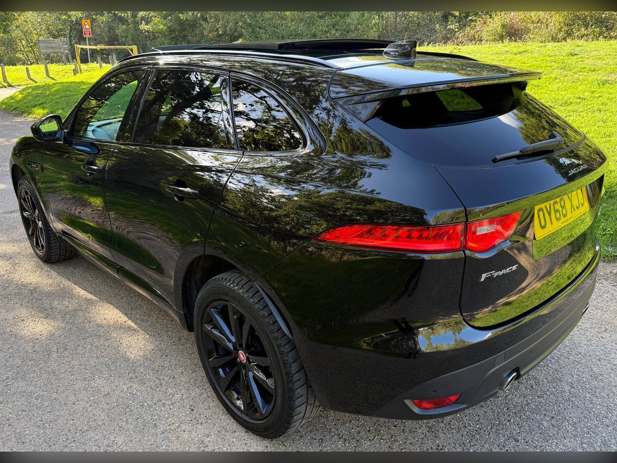 JAGUAR F-PACE 2.0 P300 BHP MODEL R-Sport Auto AWD Euro 6 ULEZ COMPLIANT (s/s) 5dr, 2018 "68 REG, 1 PREVIOUS OWNER FROM NEW, FULL MAIN DEALER SERVICE HISTORY INCLUDING 6 JAG SERVICES LAST SERVICED BY OURSELVES AND A 12 MONTHS MOT JUST ISSUED WITH NO ADVISORIES FOR COMPLETE PEICE OF MIND, 2 WORKING KEYS, HIGH SPEC VEHICLE WITH LOTS OF FACTORY ADDED EXTRA'S, FULL TILT/SLIDE GLASS OPENING PAN ROOF WITH BLIND, 14 WAY ELECTRIC LEATHER MEMORY SEATS, 10.2" WIDE SCREEN INFO SCREEN WITH DIGITAL DASH, REVERSE PARKING CAMERA, CAR PLAY, POWERBOOT, UPGRADED MERIDIAN SOUND, SUEDE HEADLINING, FULL EXTERIOR BLACK PACK IN GRILLS AND ROOF RAILS, 20" GLOSS BLACK WHEELS, KEYLESS ENTRY/START, COLD WINTER PACK INC HEATED FRONT-REAR SEATS AND STEERING WHEEL, LANE ASSISTANCE, FRONT BRAKE ASSISTANCE, ILLUMINATED KICKPLATES, AMBIENT LIGHTING, LED HEADLIGHTS, FRONT AND REAR PARKING SENSORS, POWER FOLDING DOOR MIRRORS, DRIVERS ARM REST, CRUISE CONTROL, PRIVACY GLASS, BLUETOOTH, HEATED FRONT WINDSCREEN, DUAL CLIMATE CONTROL AIR CONDITIONING, LIST GOES ON, LOVELY LOOKING CAR, RUNS AND DRIVES SUPERB, VIEWING STRICTLY BY APPOINTMENT ONLY, ANY PX CONSIDERED, 3 MONTHS STANDARD WARRANTY SUPPLIED WITH OPTIONS TO EXTEND FOR FULL 12/24/36 MONTHS NATIONWIDE COVERAGE, FCA REGULATED ALL IN HOUSE FINANCE OFFERED THROUGH OUR LARGE PANEL OF LENDERS, AA APPROVED DEALER, 12 MONTHS FREE AA BREAKDOWN COVER INCLUDED.