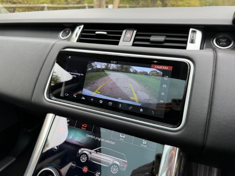 This 2018 Land Rover Range Rover Sport SD V6 HSE is presented with a clear vehicle history check, offering peace of mind for its next owner. This capable four wheel drive model is powered by a 3.0L Euro 6 diesel engine, delivering a compelling blend of performance and efficiency. The HSE trim level ensures a premium experience, further enhanced by notable features such as the striking Narvik Black contrast painted roof and an impressive 825W Meridian Surround Sound System.